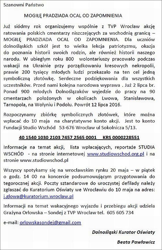 Poniżej list Dolnośląskiego Kuratora Oświaty: