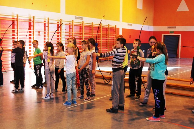Dnia 2 listopada 2016 r. w naszej szkole odbyły się pierwsze zajęcia z łucznictwa. Uczniowie pod okiem pani Anny Rabskiej i pani Karoliny Gil mieli możliwość zapoznać się z zasadami treningu łuczniczego, a także mogli się wczuć w rolę Robin Hooda strzelając z łuku do tarczy. Zajęciom kibicowali rodzice oraz pani dyrektor - Barbara Iwan.