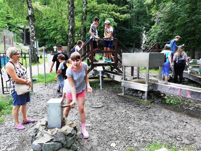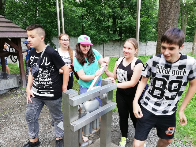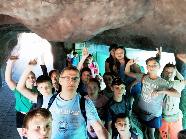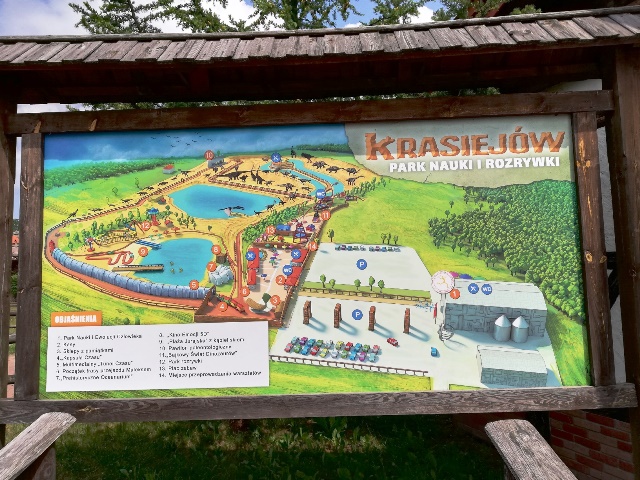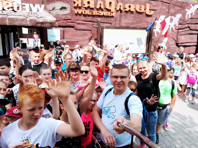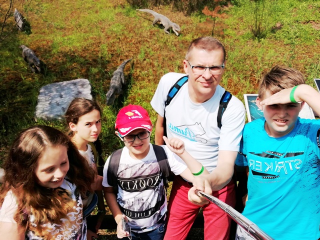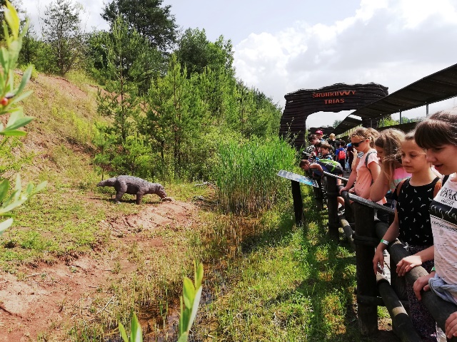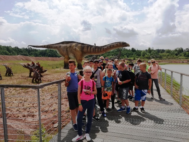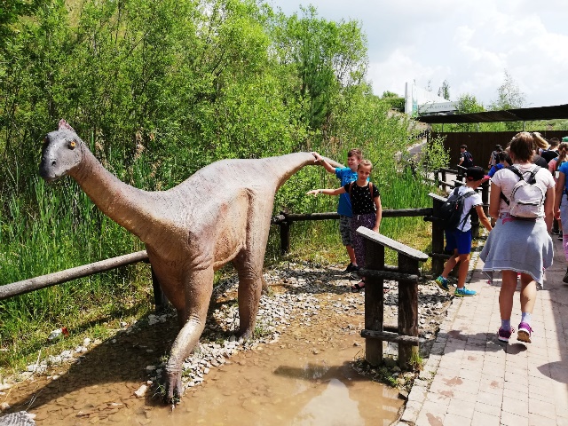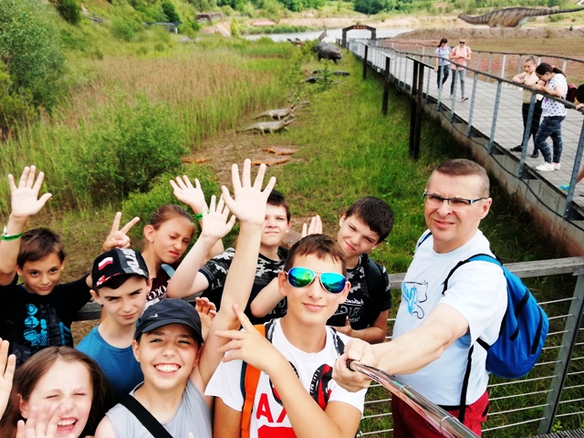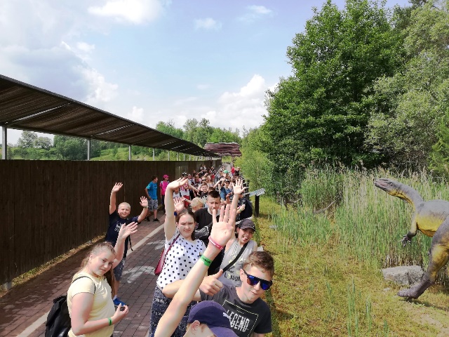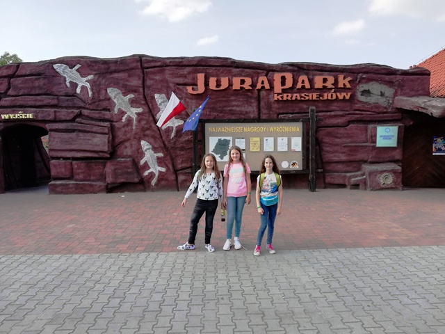 Następnego dnia udaliśmy się do „Jura Parku” w Krasiejowie. Zwiedzanie krainy rozpoczęło się od przygody w „Tunelu Czasu”, gdzie na pokładzie „Kapsuły Czasu”, w ciągu 8 minut mogliśmy zobaczyć, jak powstał świat. Przez teren wyrobiska przeszliśmy ścieżką dydaktyczną, na której zapoznaliśmy się z pracą paleontologów widzieliśmy skamieniałości i miejsca wydobycia szczątków dinozaurów. Wzdłuż ścieżki rozmieszczone były rekonstrukcje gadów i płazów. Można było dowiedzieć się jak one się nazywały, jak żyły i czym się odżywiały. Z zafascynowaniem przyglądaliśmy się ich rozmiarom. Odwiedziliśmy także Pawilon Paleontologiczny – jedyne muzeum na świecie, które stoi nad czynnym stanowiskiem paleontologicznym. Przez szklaną podłogę podziwialiśmy skamieniałości gadów i płazów. Wiele emocji i wrażeń wzbudziły jednak dwa miejsca w JuraParku: Kino 5D oraz Oceanarium. W Kinie 5D oprócz trójwymiarowych wrażeń doznawaliśmy także innych wrażeń zmysłowych: dźwiękowych, ruchowych, dotykowych i zapachowych, natomiast w Oceanarium na własne oczy mogliśmy zobaczyć morskie stwory sprzed milionów lat. Park jest miejscem, gdzie można atrakcyjnie spędzić wiele godzin i gdzie czas mija bardzo szybko. Wszyscy wycieczkowicze radośni, uśmiechnięci i pełni wrażeń opuścili to niezwykłe miejsce.