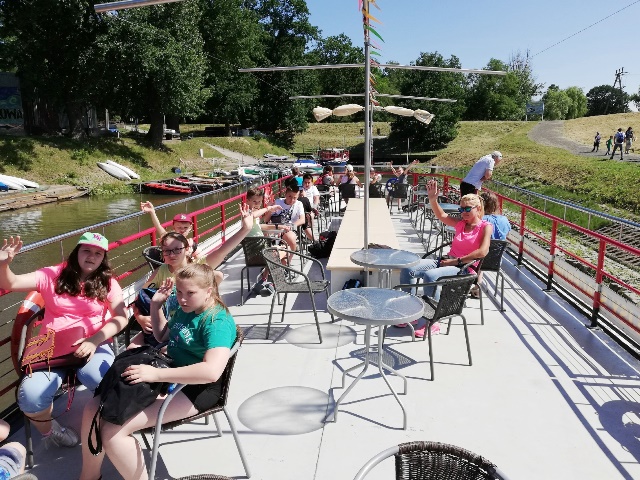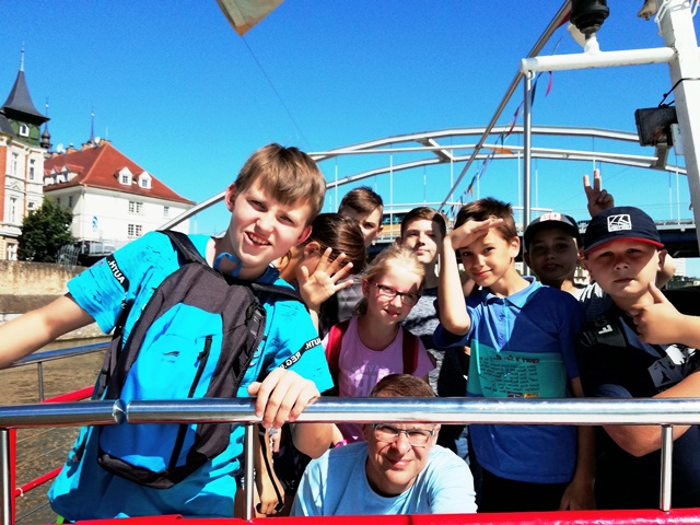 Następnie poszliśmy na przystań, gdzie czekał nas w rejs statkiem „Opolanin” po rzece Odrze. Dla wielu z nas był to pierwszy kontakt z pojazdem wodnym i takim sposobem podróżowania. Płynąc mogliśmy podziwiać Opole z perspektywy rzeki.