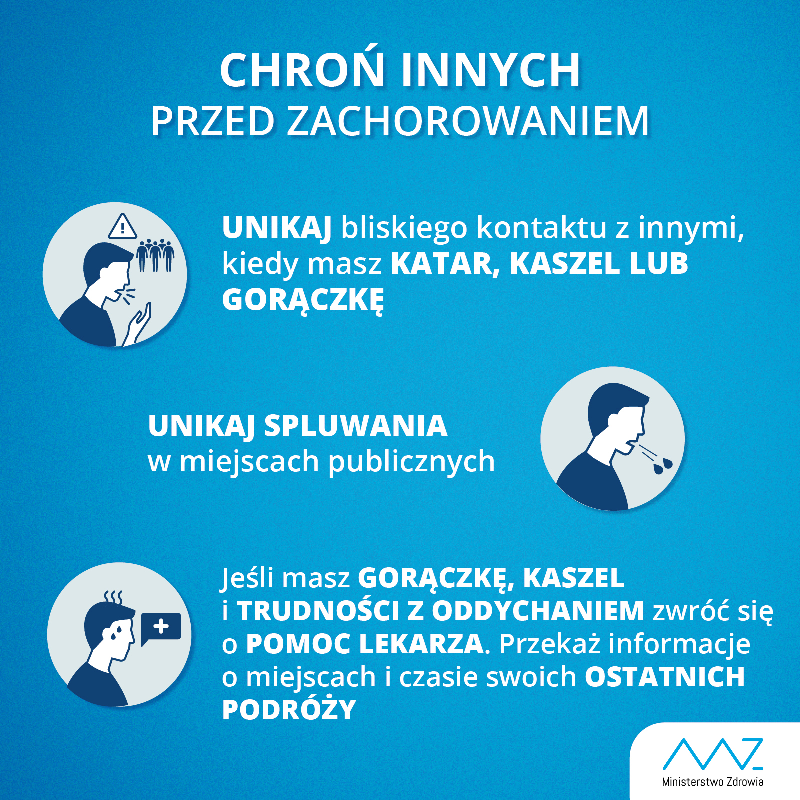 Jeśli masz łagodne objawy ze strony układu oddechowego i nie podróżowałeś do Chin i innych krajów zagrożonych, pamiętaj o stosowaniu podstawowych zasad ochrony podczas kaszlu, kichania oraz higieny rąk i pozostań w domu do czasu powrotu do zdrowia, jeśli to możliwe.