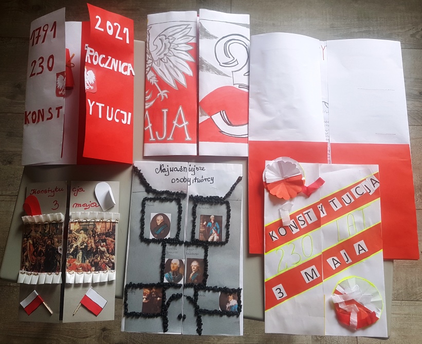 W dniu 10 maja 2021 roku rozstrzygnięty został konkurs z okazji 230 rocznicy uchwalenia Konstytucji 3 Maja. Wzięło w nim udział 12 uczniów z klas IV-VIII. Wszystkie prace - labooki i prezentacje - były bardzo ładne, więc otrzymały wyróżnienia. Gratulujemy i dziękujemy za udział w konkursie.