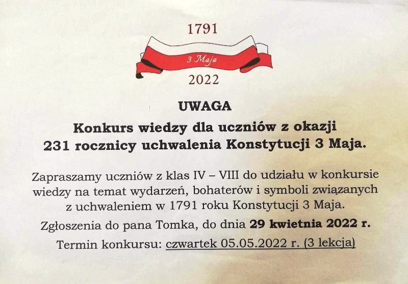 Serdecznie zapraszamy uczniów do udziału w konkursach organizowanych w najbliższym czasie.Szczegóły poniżej.