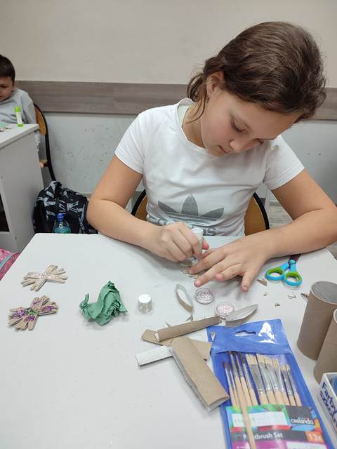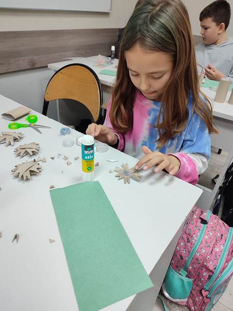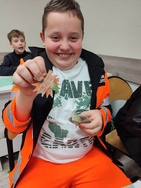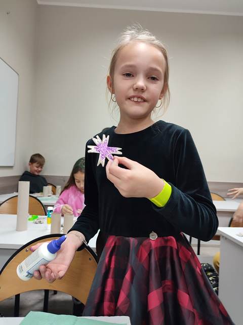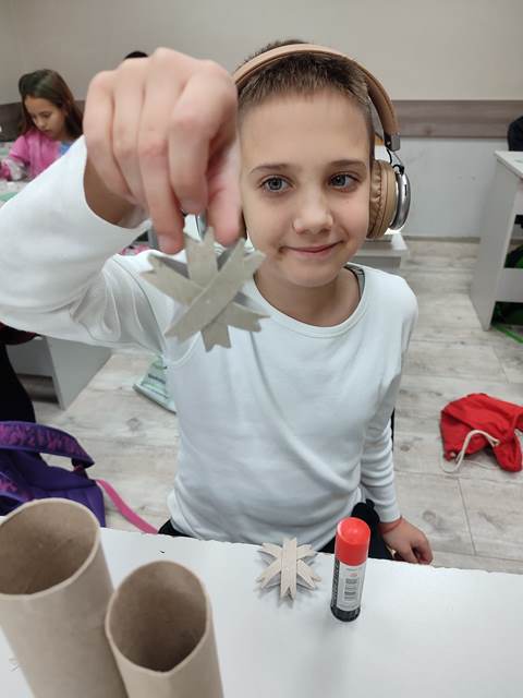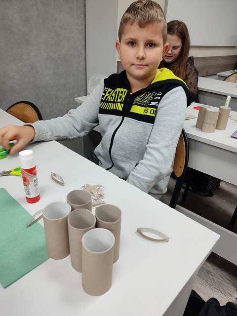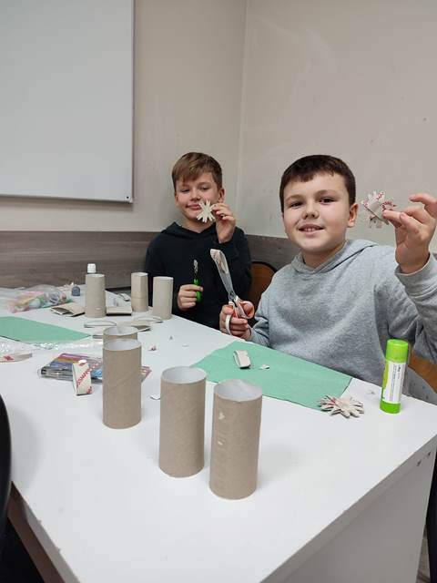 Uczniowie klasy 4 powoli szykują się do świątecznego dekorowania swojej klasy. Z tej okazji na dzisiejszych zajęciach z ekologii uczniowie dzięki wykorzystaniu papierowych rolek po papierze toaletowym oraz ręczników kuchennych wykonali świąteczne gwiazdki, które z pewnością będą mogli wykorzystać przy ozdabianiu swojej klasy.