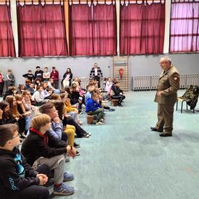 Dnia 30 listopada 2022 roku w naszej szkole gościł starszy chorąży sztabowy Pan Marcin Cedro, który wygłosił prelekcję o pracy żołnierza. Wiele mówił o potrzebie obrony naszego państwa, szczegółowo wytłumaczył, za co otrzymał poszczególne odznaki i medale, zaprezentował strój wojskowy, pokazał również swój mundur, w którym uczestniczył w misji pokojowej. Opowiedział także o pracy na misji pokojowej w Iraku i zachęcał uczniów naszej szkoły do tego, aby w przyszłości podjęli pracę jako żołnierze.