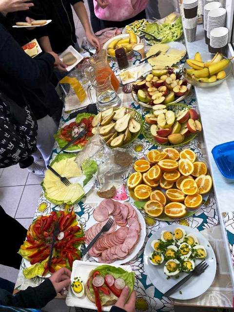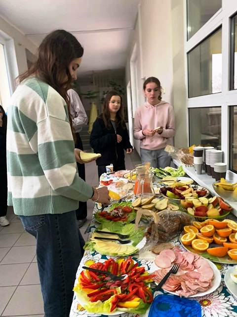 Po raz kolejny w naszej szkole realizowano akcję promowania zasad zdrowego odżywiania. Tym razem klasa VI przygotowała zdrowe śniadanie. Dzieci przyniosły świeże, smaczne i zdrowe produkty, dzięki ogromnemu zaangażowaniu rodziców. Przygotowano szwedzki stół, na którym nie zabrakło oprócz wędlin i żółtego sera, warzyw, owoców, soków. Uczniowie poznali, jak różnorodne i zdrowe może być śniadanie oraz samodzielnie skomponowali swoje kanapki.