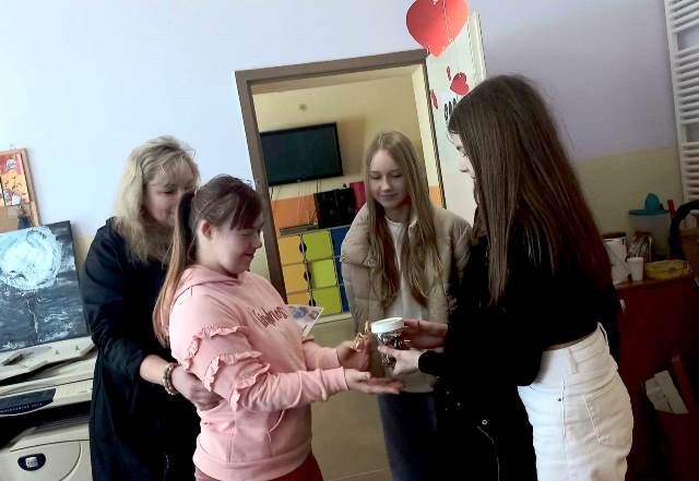 24 marca b.r. przekazaliśmy zebrane podczas kiermaszu ciast pieniądze (527zł) legnickiemu Stowarzyszeniu Otwórz Serce. Uczennice kl. 6: Emilka, Amelia i Michalina wraz z p. Magdą zwiedziły siedzibę Stowarzyszenia. Opiekuje się ono sześćdziesięciorgiem dzieci z Zespołem Downa. Organizacja, założona i prowadzona przez rodziców dzieci z niepełnosprawnościami, m.in. organizuje zajęcia rehabilitacyjne dla swoich pociech czy grupy wsparcia dla ich opiekunów. Mamy nadzieję, że nasz dar wspomoże działania Stowarzyszenia i będzie początkiem dobrej współpracy. Ogromne podziękowania dla wszystkich Rodziców, którzy upiekli przepyszne ciasta i 21 marca dostarczyli je na szkolny kiermasz.