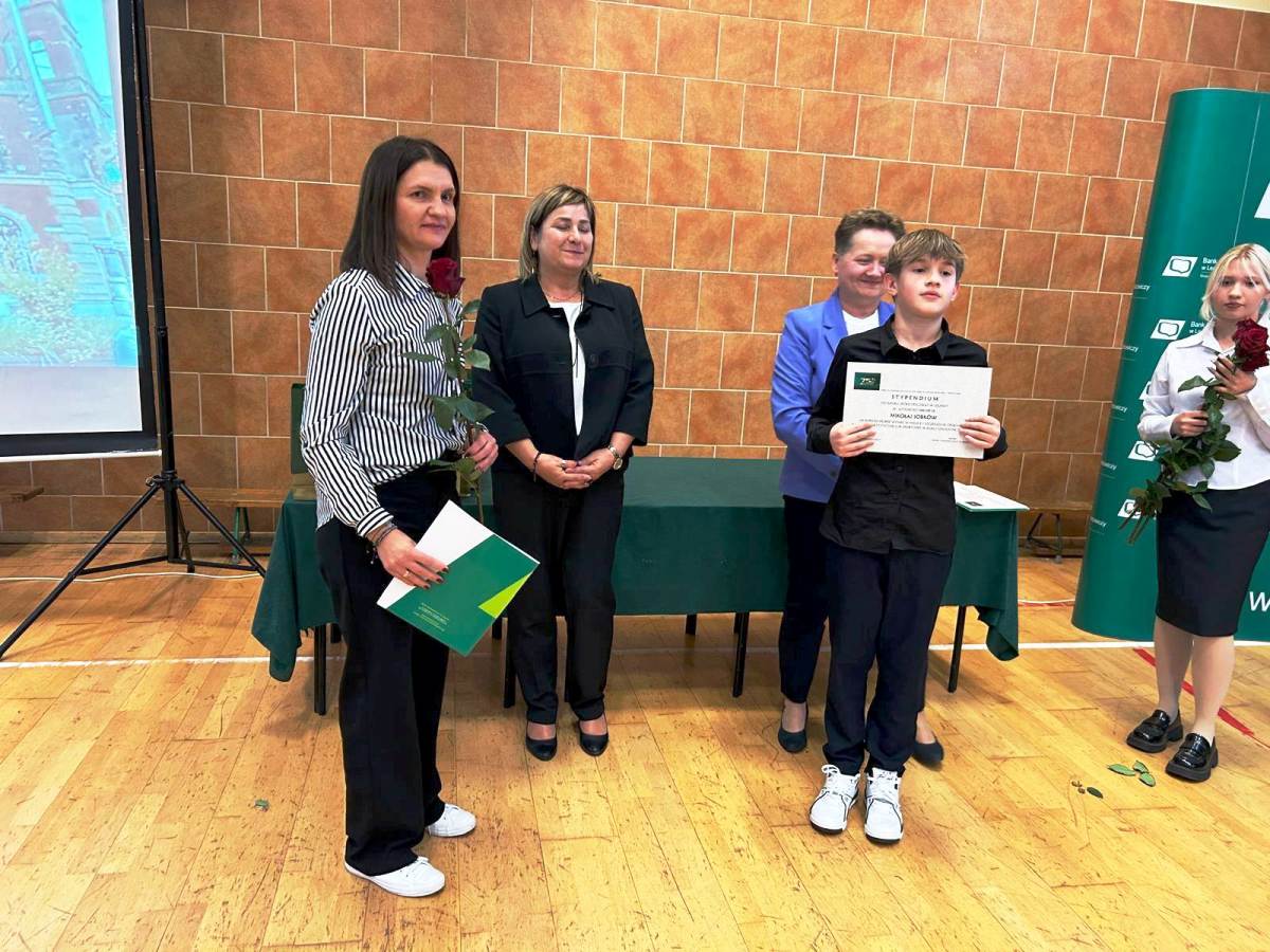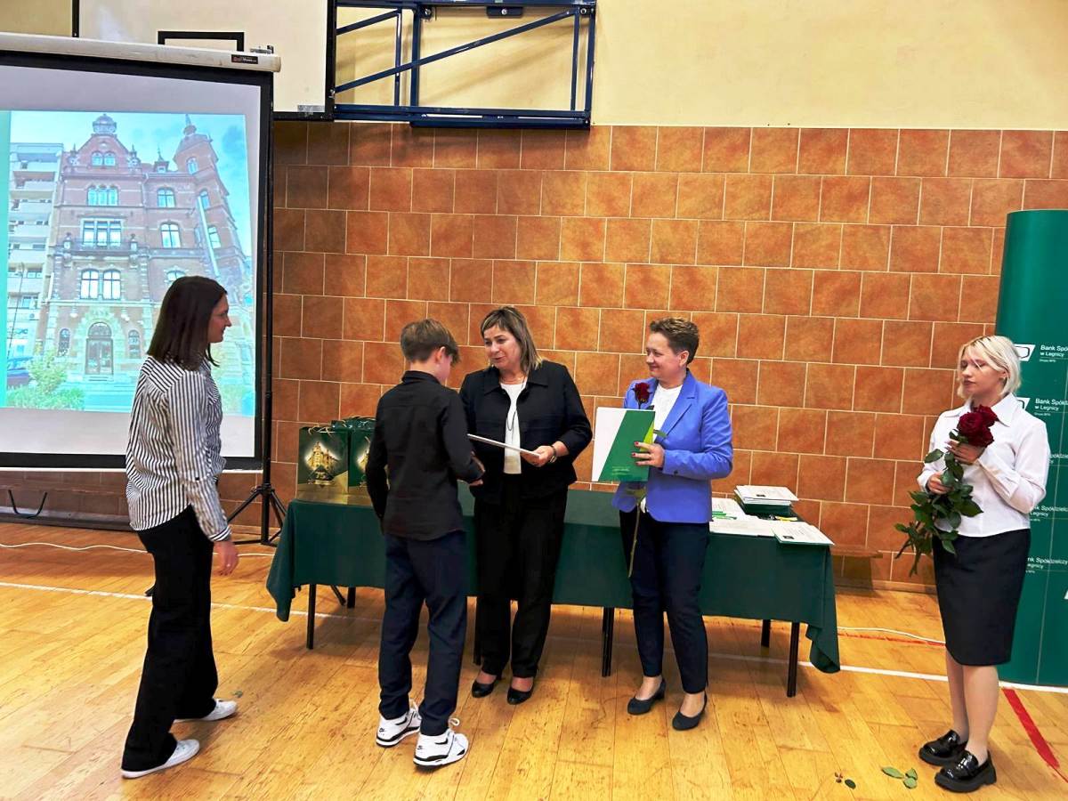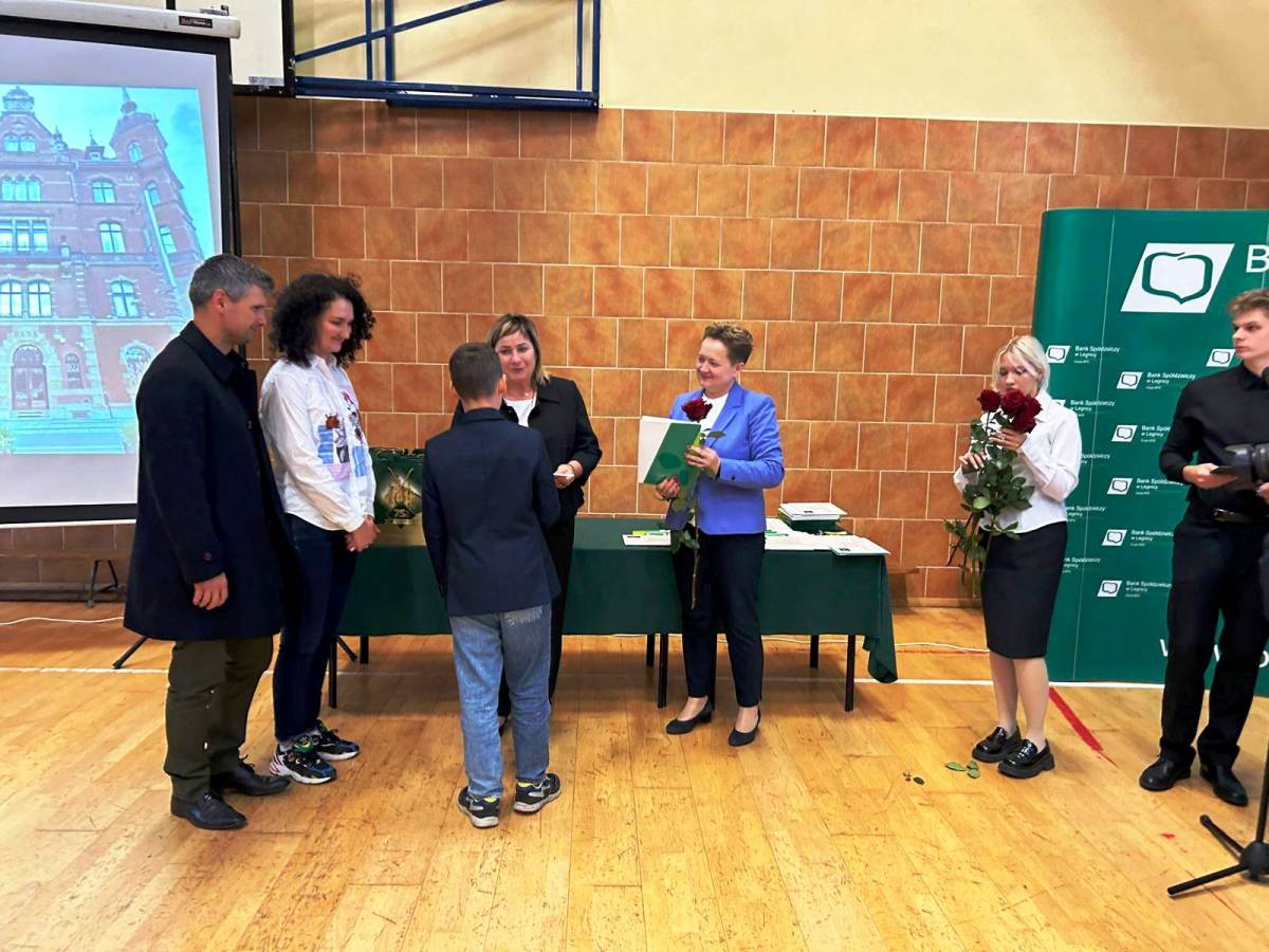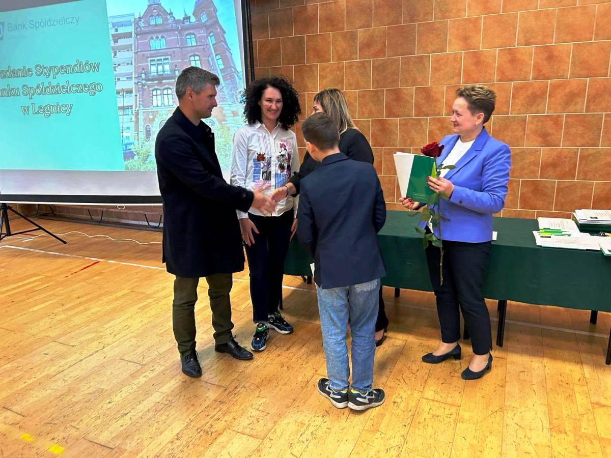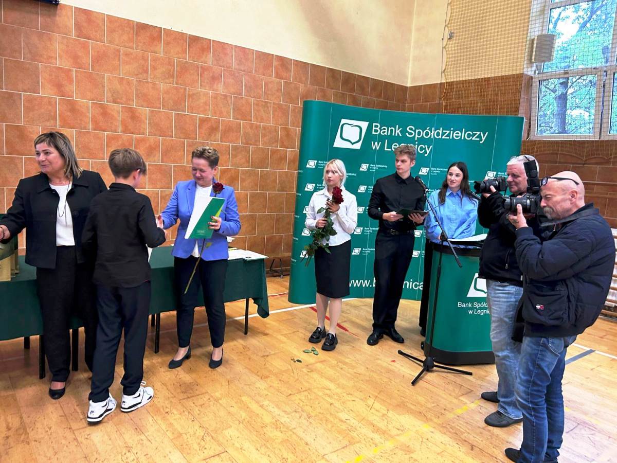 „Wspaniała wiadomość! 26 września 2025 roku dwaj Uczniowie naszej szkoły: Szymon Bobrowski z kl. 5 oraz Mikołaj Sobków również z kl.5 otrzymali stypendia Banku Spółdzielczego w Legnicy. Uroczystość odbyła się w Zespole Szkół Ekonomicznych w Legnicy i została przygotowana przez Panią Małgorzatę Antoninę Brzeską - Prezes Zarządu Banku Spółdzielczego w Legnicy, która również wręczyła Pani Dyrektor Wioletcie Kudłacz podziękowanie za współpracę szkoły z bankiem. Stypendystom i ich Rodzicom serdecznie gratulujemy.