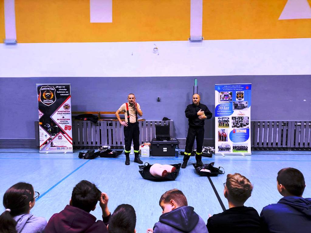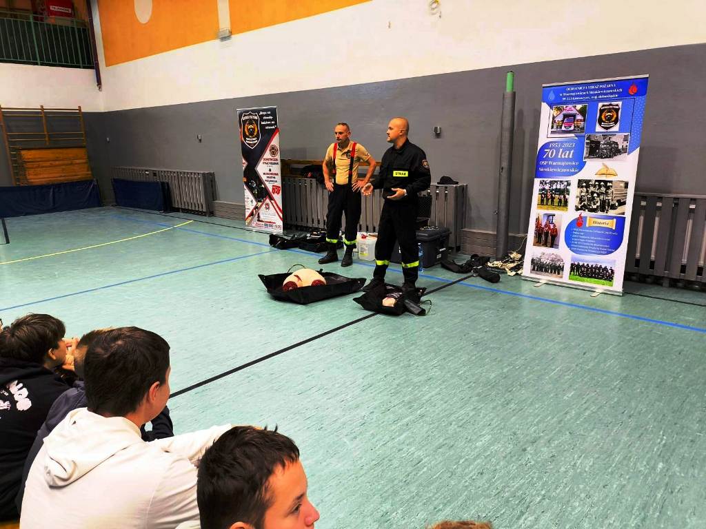 W dniu 04 listopada naszą szkołę odwiedzili strażacy z OSP w Warmątowicach Sienkiewiczowskich. Opowiedzieli o zasadach udzielania pierwszej pomocy. Przeszkolili uczniów klas 6 - 8 w zakresie udzielania pierwszej pomocy poszkodowanym w ciężkich urazach i krwotokach. Dziękujemy naszym strażakom za inspirującą i ciekawą lekcję udzielania I pomocy.
