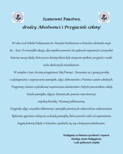 Gorąca prośba do Absolwentów i Przyjaciół szkoły